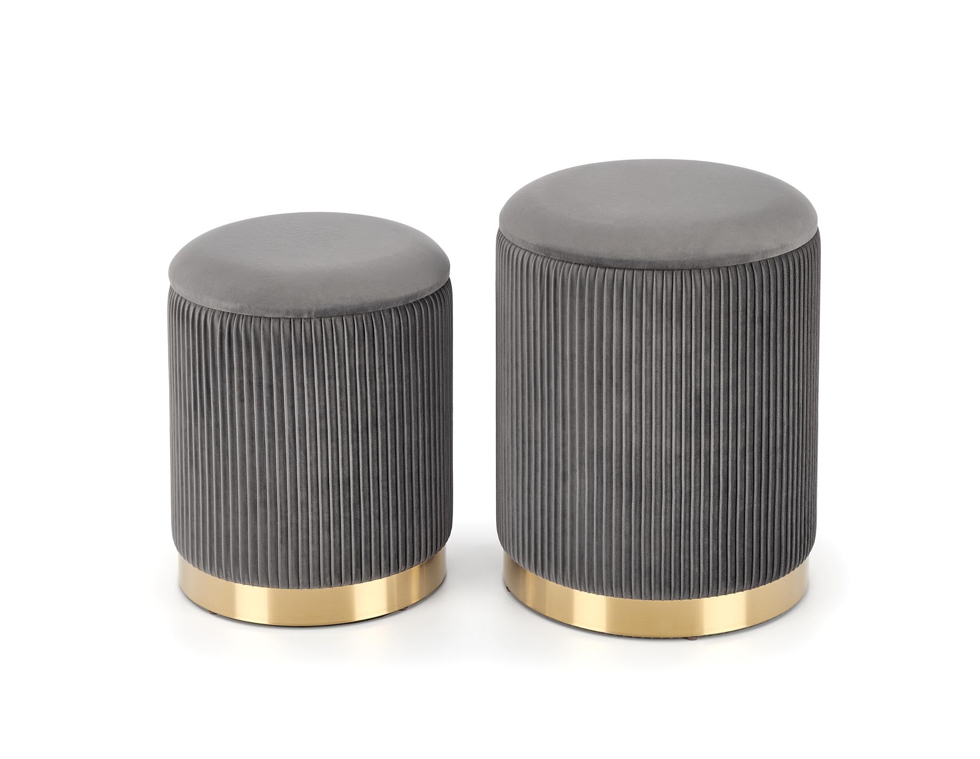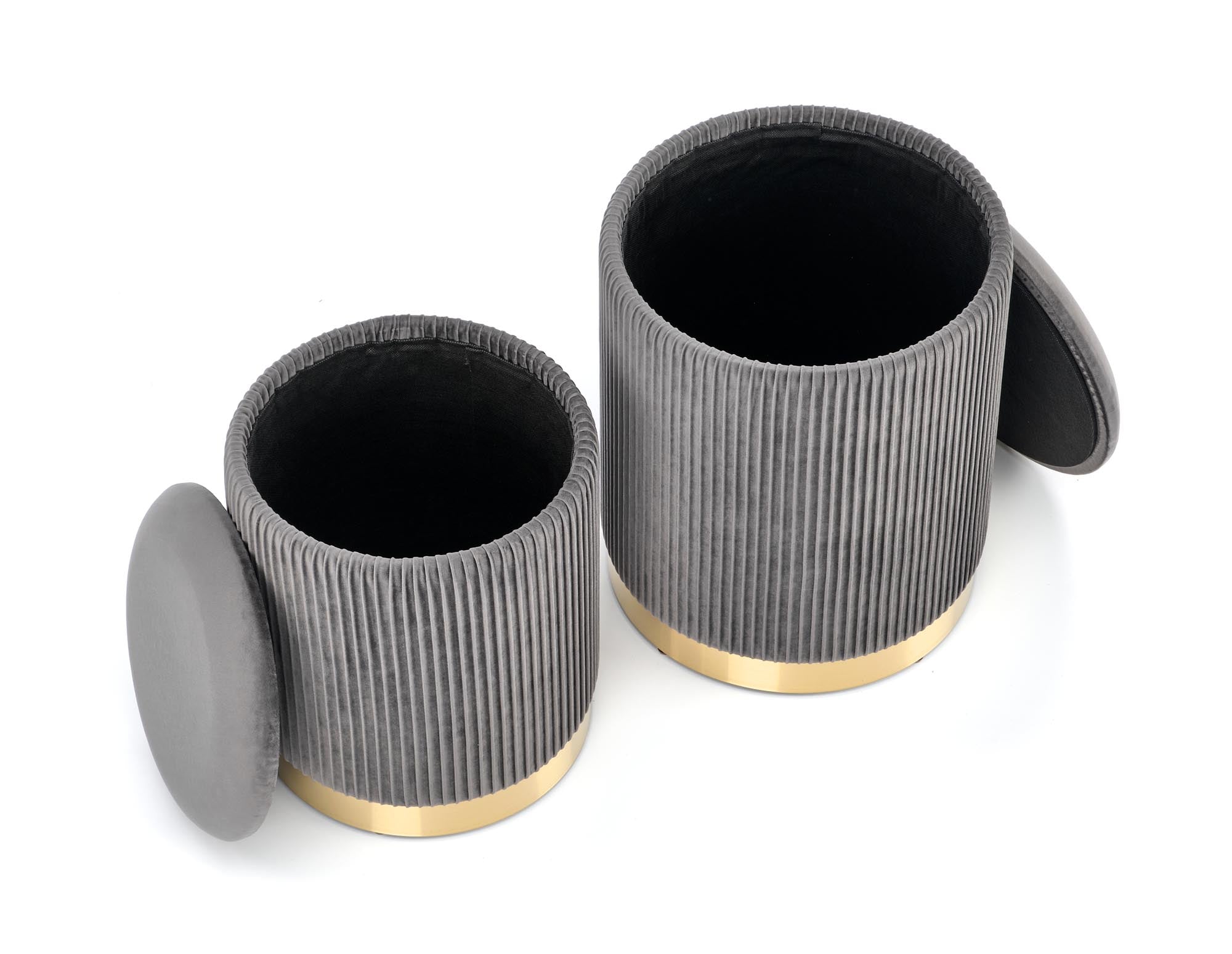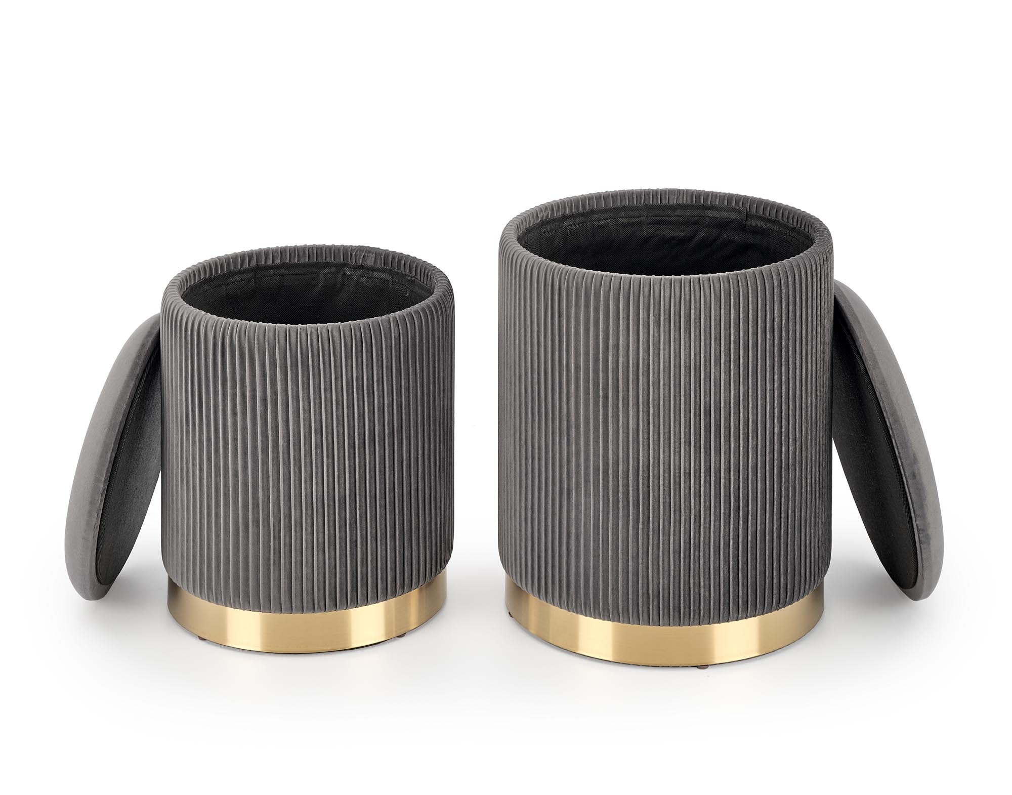 Ismerje meg a Bryson Puff Szettet, amely az elegáns otthonok új kedvence lehet. Ez a páratlan szett két méretben kapható, így tökéletesen igazodik minden térhez. A mély sötétkék színű bársonyborítás luxus érzetet kelt, míg a puffok vertikális pliszírozott mintázata modern eleganciát sugároz. Az arany színű alappal kombinálva a Bryson puff szett nem csupán ülőalkalmatosságként szolgál, hanem kiemelkedő design elemként is funkcionál. A szett részei fedelekkel rendelkeznek, melyek eltávolításával praktikus tárolóhelyekké változnak, így kiválóan alkalmasak kiegészítők, magazinok vagy kisebb tárgyak elrejtésére. A Bryson puff elérhető sötétkék, finom szürke és mély zöld színekben is, lehetővé téve, hogy a szett harmonikusan illeszkedjen a környezetéhez. A változatos színválaszték révén mindenki megtalálhatja a saját ízlésének megfelelő kombinációt.