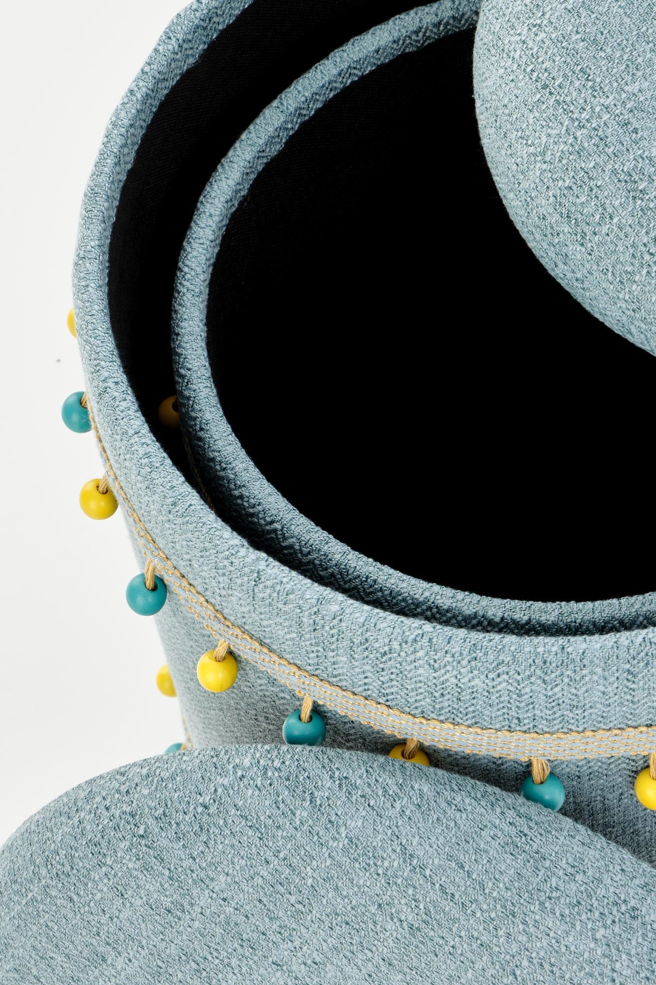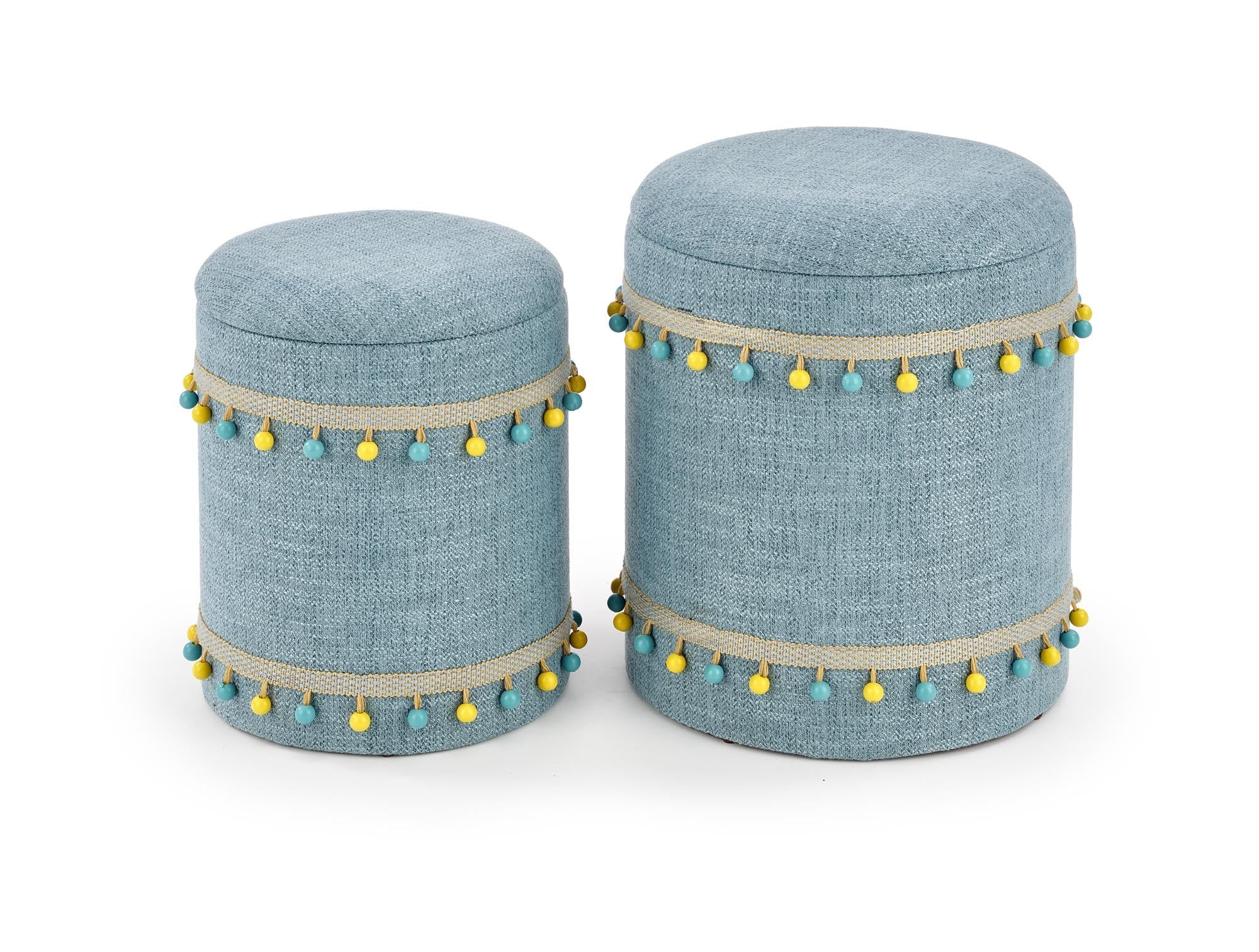 A Zion puff szett egy valódi vizuális öröm, amely bohém stílusával és vidám színeivel azonnal feldobja otthona hangulatát. A szett két puffot tartalmaz, melyeket kellemes kék szövet borít, míg a karakteres pompomok és a különleges szövésű szalagok játékos kontrasztot képeznek, lendületet adva a puffok megjelenéséhez. Az ülőfelület alatt rejtett tárolóhely biztosít helyet a kisebb tárgyaknak, megkönnyítve a szervezést és a rend fenntartását.