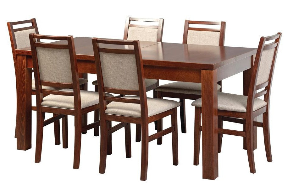 Nyitható, bükk furnérozott asztal pácolt és lakkozott kivitelben.