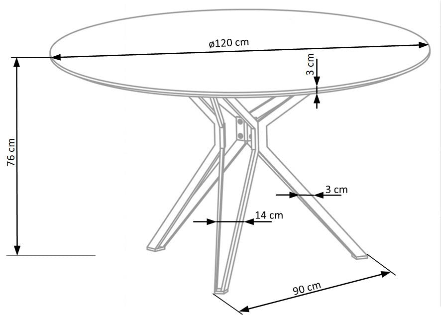 Szélesség 120 cm, Magasság 76 cm, Mélység 76 cm