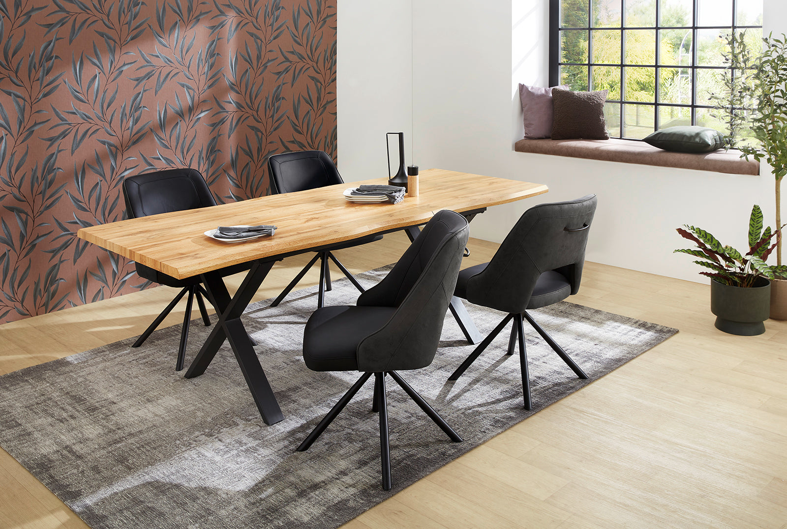Az Eliza étkezőasztal azoknak készült, akik a modern praktikusságot egy kis karakterrel és melegséggel szeretnék kombinálni. A mérete ideális a mindennapi használatra: kényelmesen teríthető, jól kihasználható felületet ad, miközben a bővíthető kialakításnak köszönhetően vendégségben is magabiztosan helytáll. A modell különlegessége a hullámos szélű asztallap, amely finom, természetes hatást kelt, és feldobja a klasszikus téglalap formát. Ez a részlet barátságosabbá teszi az összképet, így az Eliza könnyen válik a családi étkezések és közös pillanatok kedvenc helyszínévé. Az asztal bővíthető, ezért ha érkeznek a vendégek, gyorsan nagyobb teret teremthetsz.