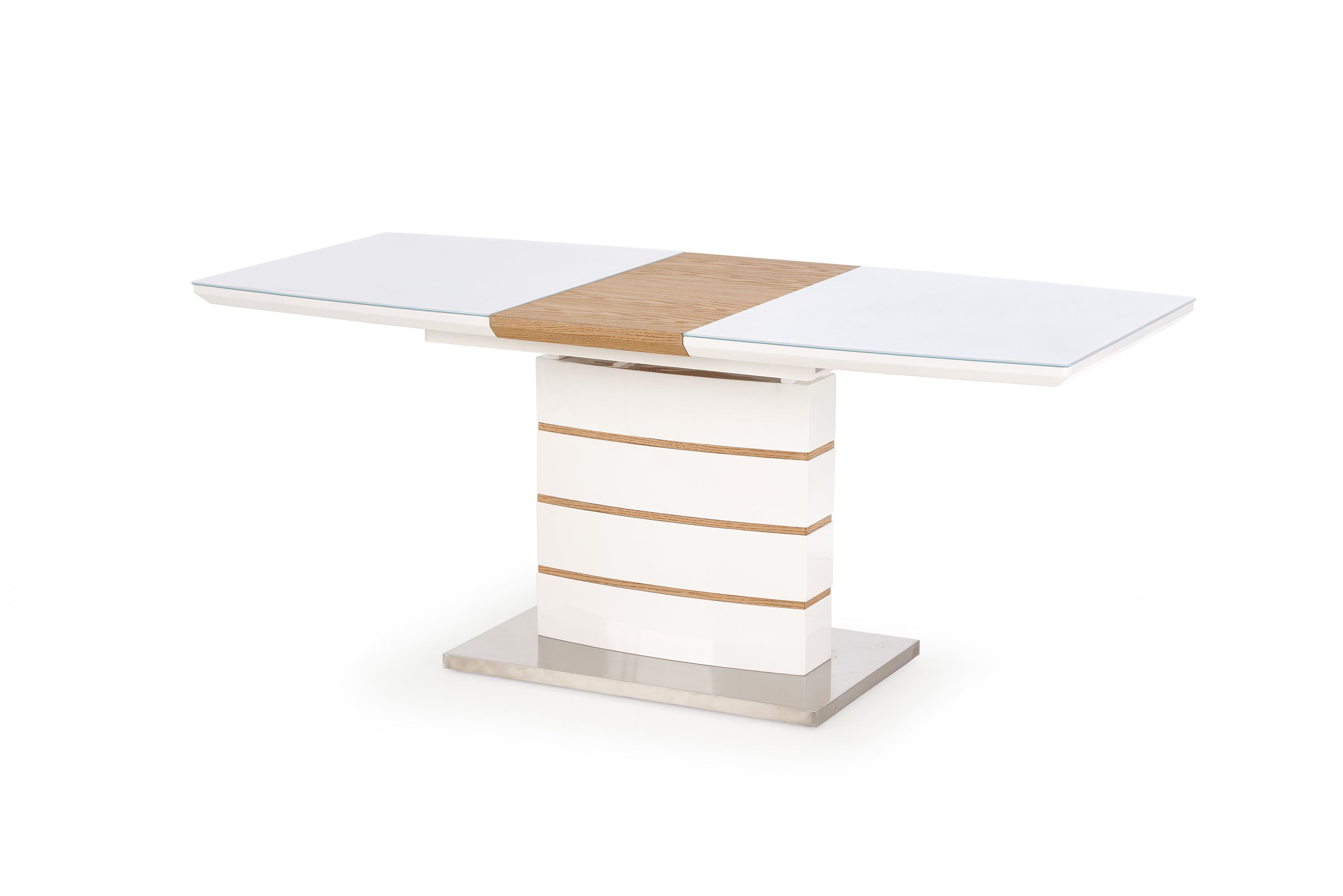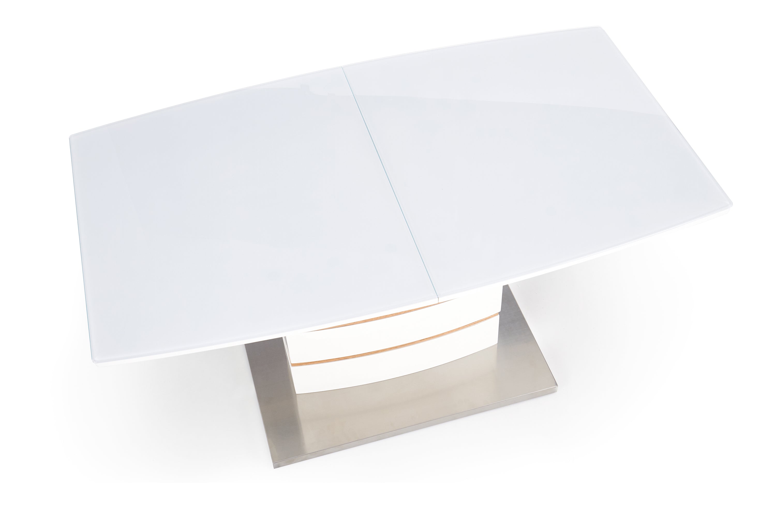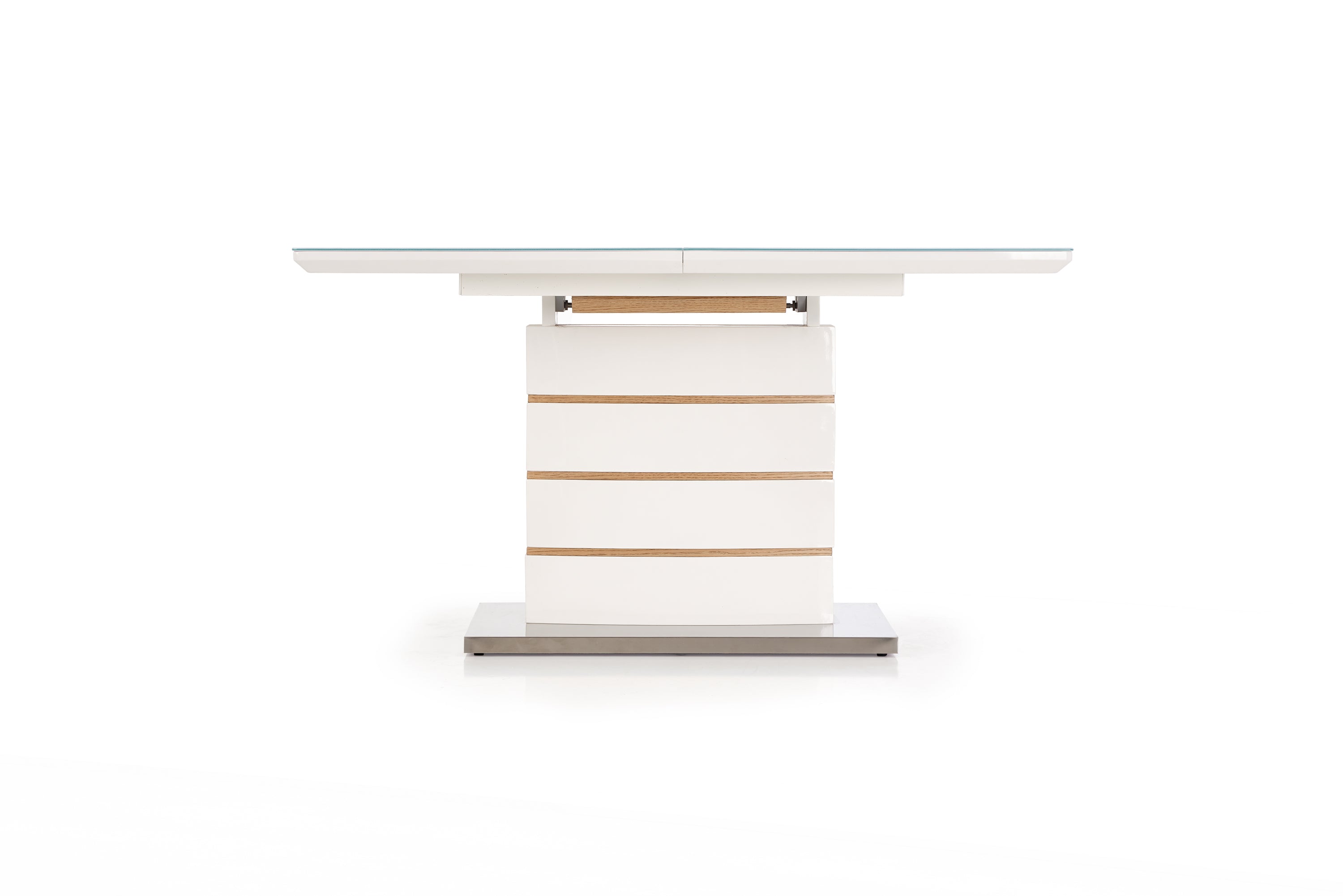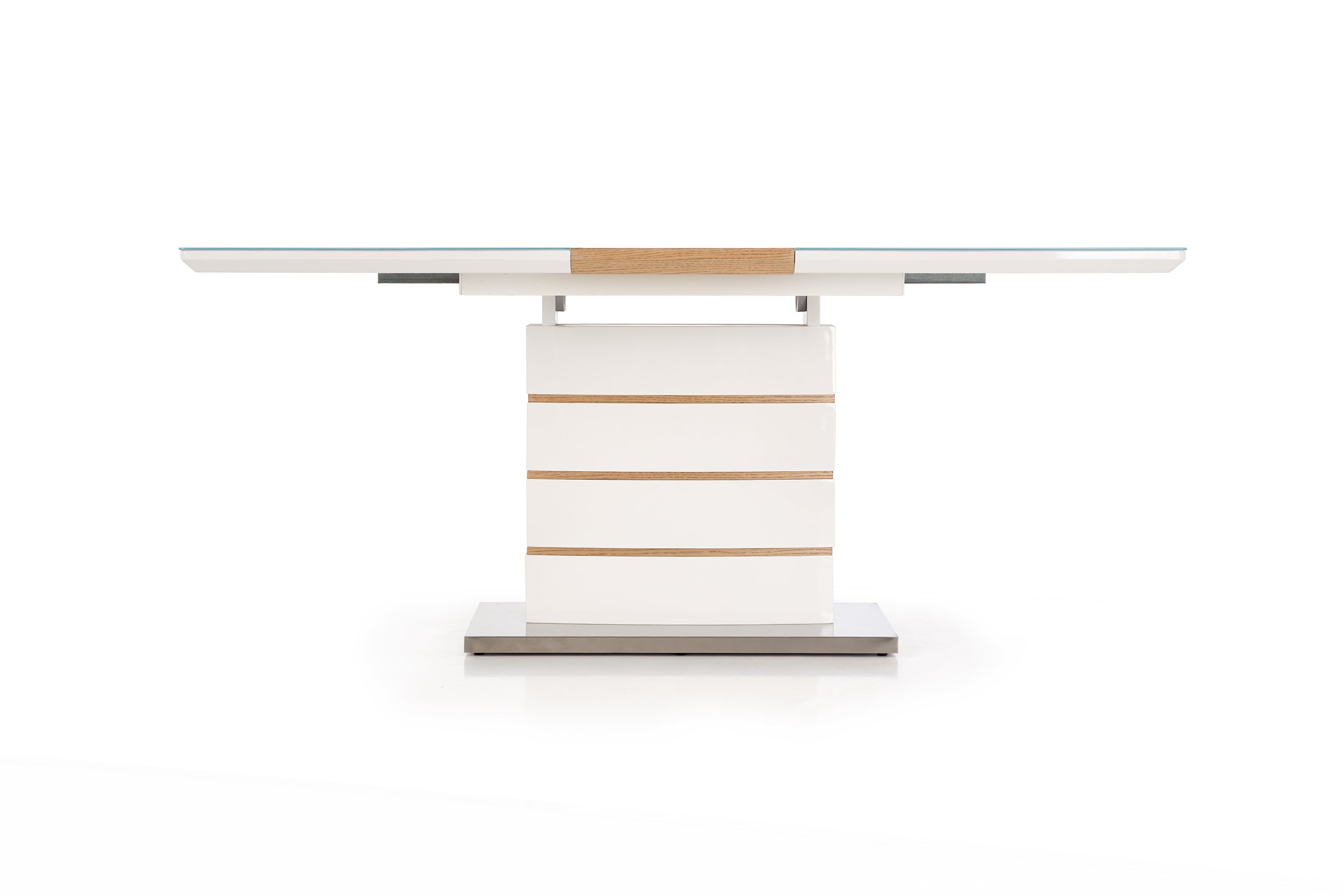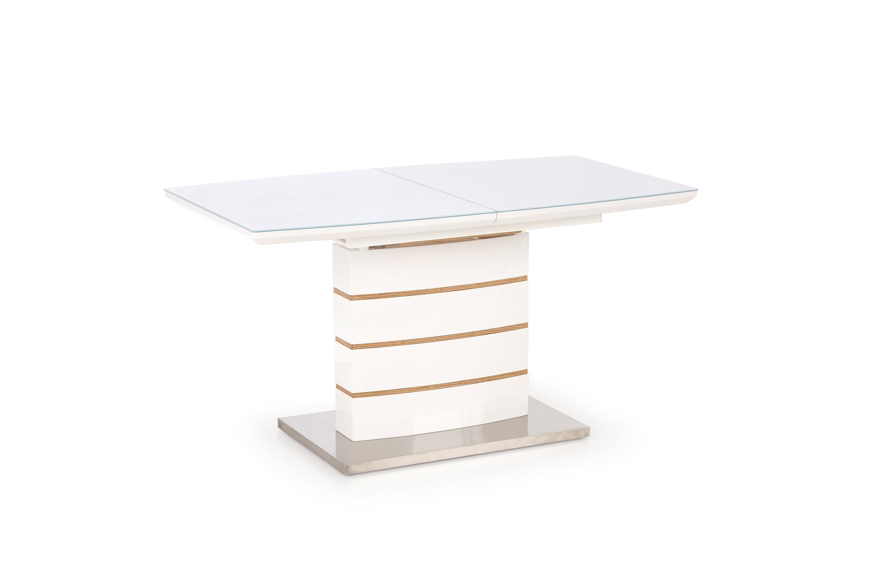 Asztallap anyaga: Lakkozott MDF, natúr furnér és üveg