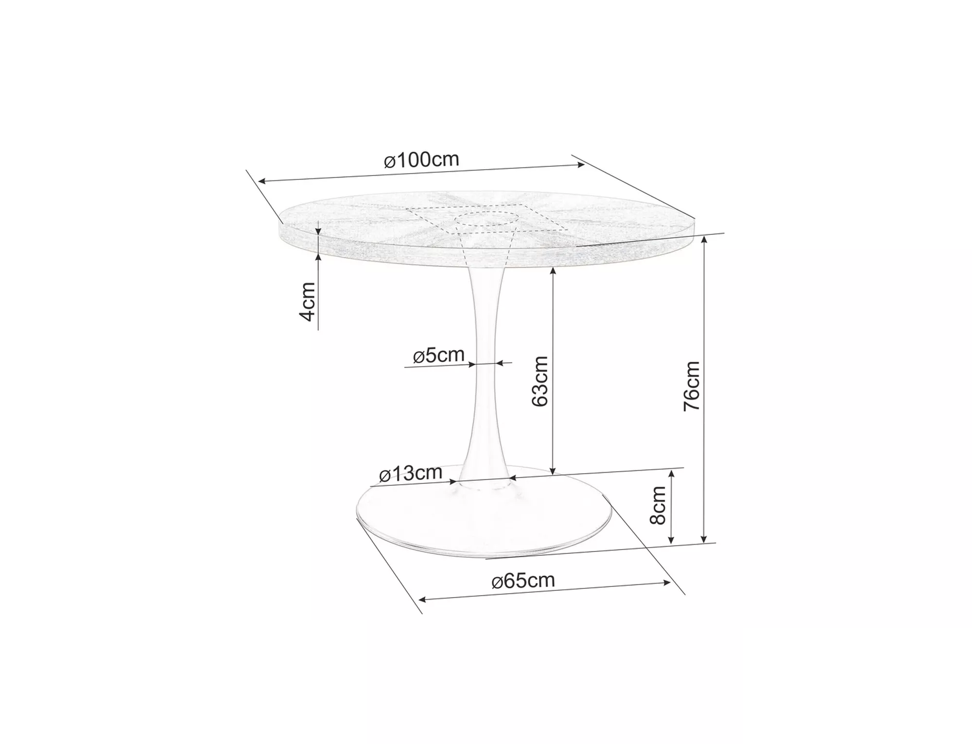 Szélesség 100 cm, Magasság 76 cm, Mélység 100 cm