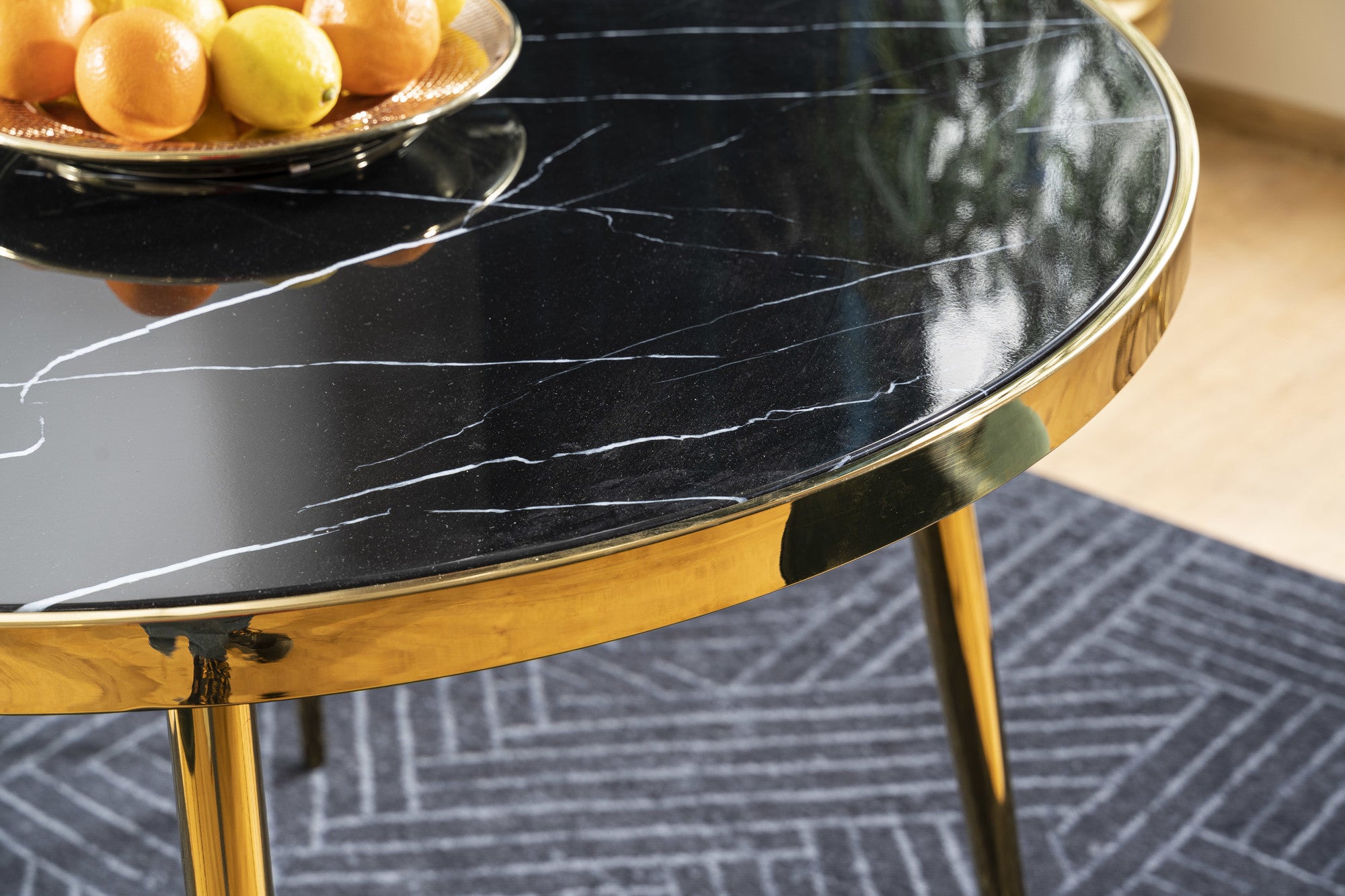 Szükséged van egy kis luxusra az otthonodban? A Winnie étkezőasztal fekete márvány mintás edzett üvegből készült és teszi szemet gyönyörködtetővé étkeződet. Az asztallapot fényes arany fém lábak tartják, így szinte bármilyen színű szék jól passzolhat hozzá. A döntés csak rajtad áll!