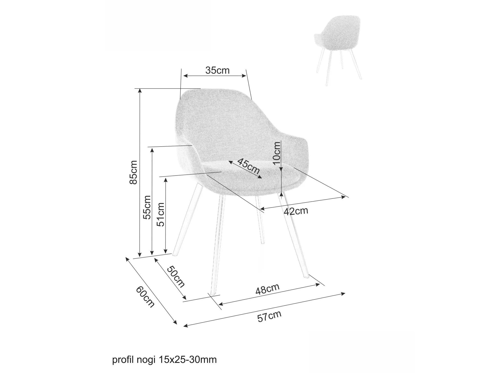 Szélesség 57 cm, Magasság 85 cm, Mélység 45 cm