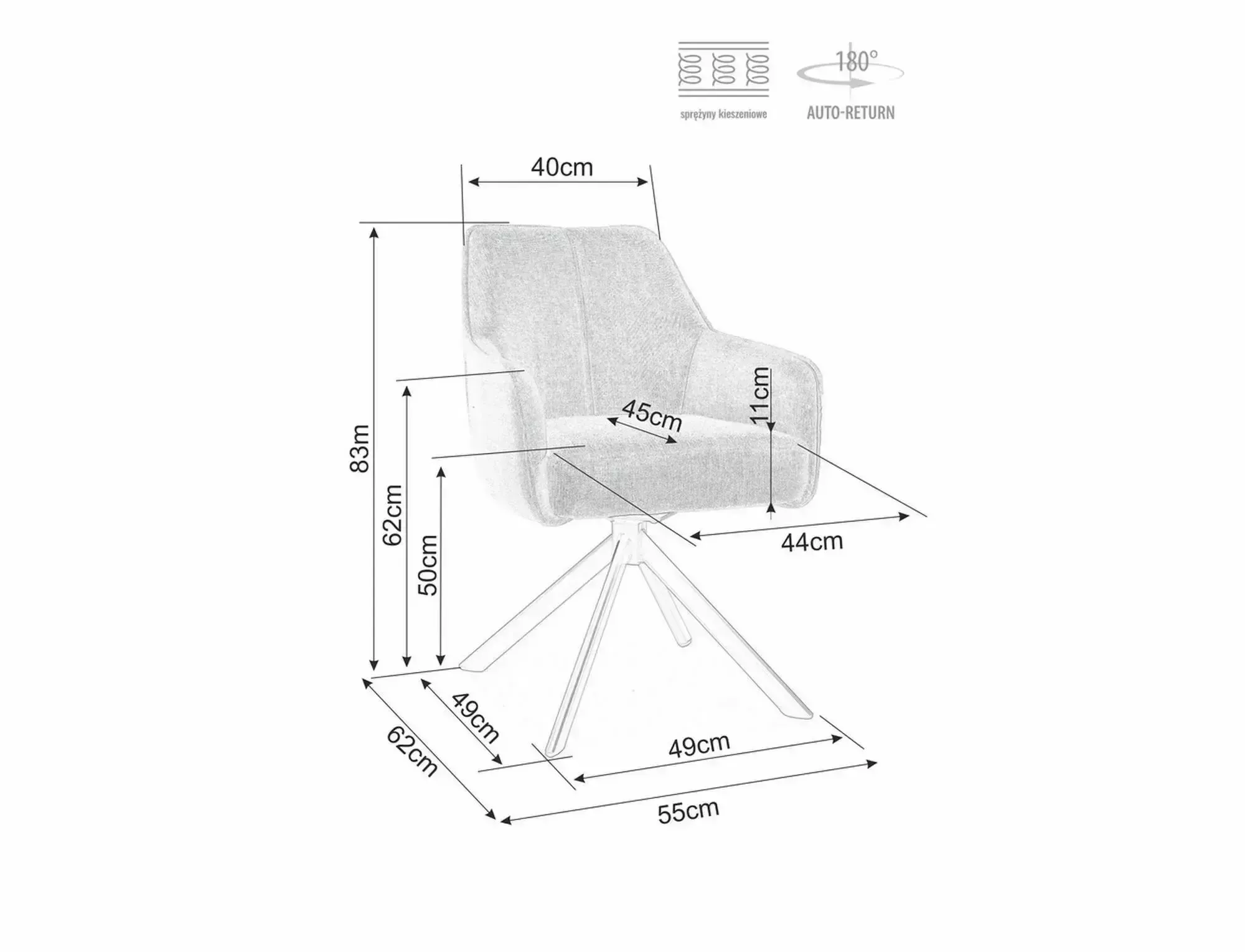 Szélesség 55 cm, Magasság 83 cm, Mélység 45 cm