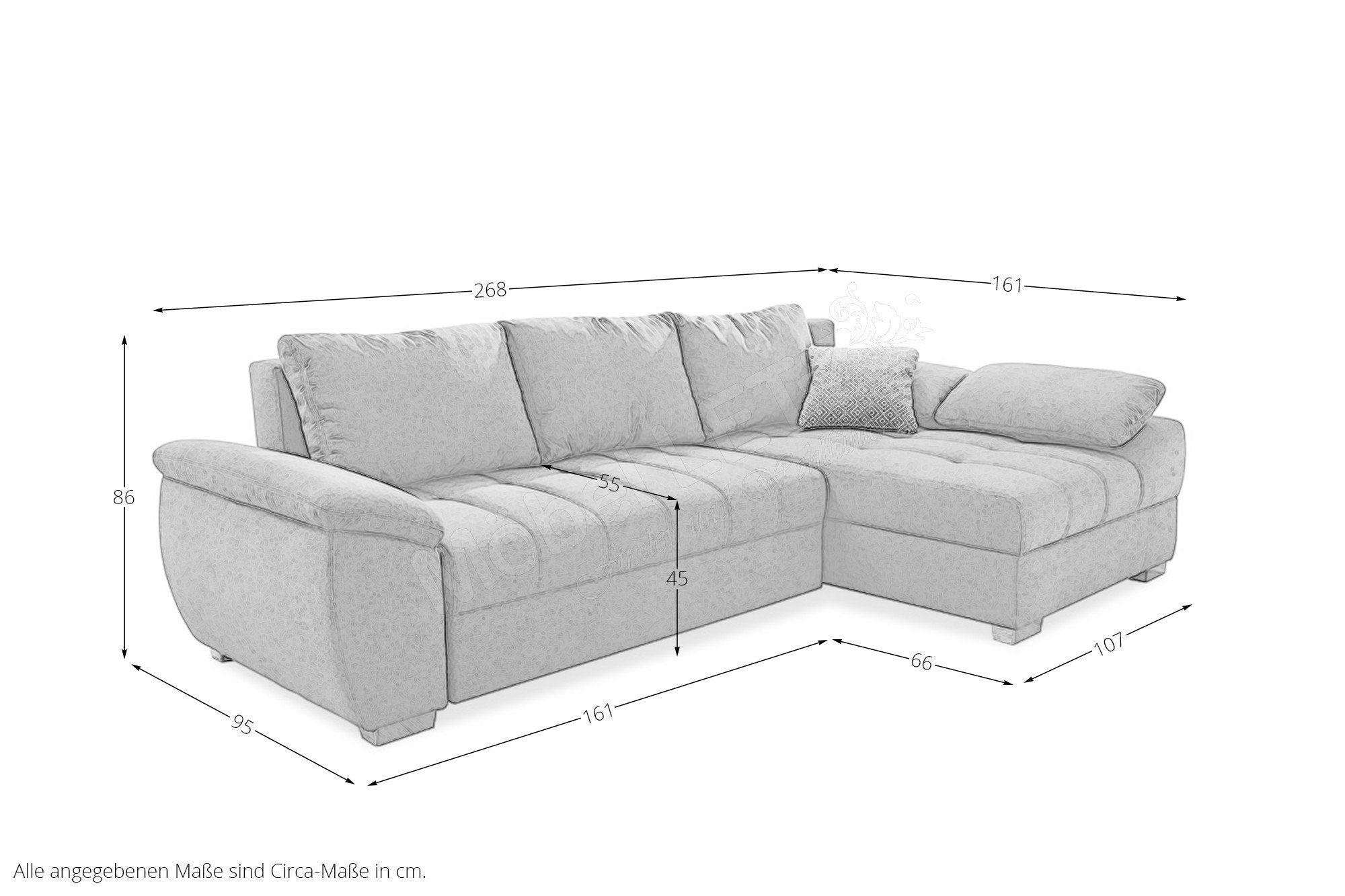Szélesség 268 cm, Mélység 161 cm