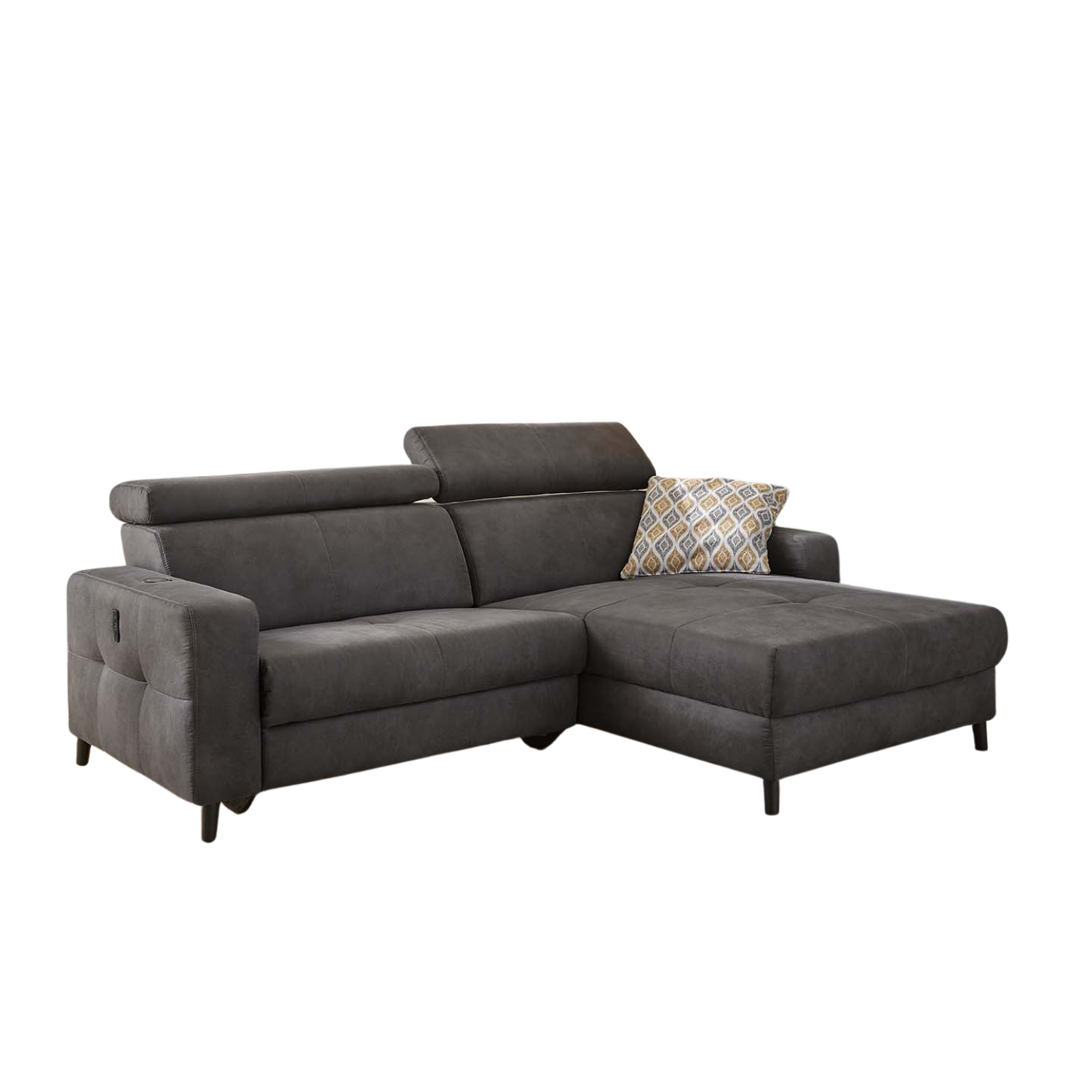 A Henrik sarokkanapé a modern technológia és a kényelem tökéletes kombinációja. Az elektromos relaxfunkció lehetővé teszi, hogy könnyedén pihenj és élvezd az optimális kényelmet, egy gombnyomásra. A több fokozatban állítható fejtámlák garantálják, hogy mindig a legideálisabb pozícióban helyezkedj el, legyen szó olvasásról vagy pihenésről. A beépített vezeték nélküli töltő és USB töltő funkciók gondoskodnak arról, hogy eszközeid mindig kéznél legyenek és feltöltve maradjanak, így a Henrik kanapé nemcsak kényelmi, hanem praktikus megoldásokat is kínál a mindennapokban.