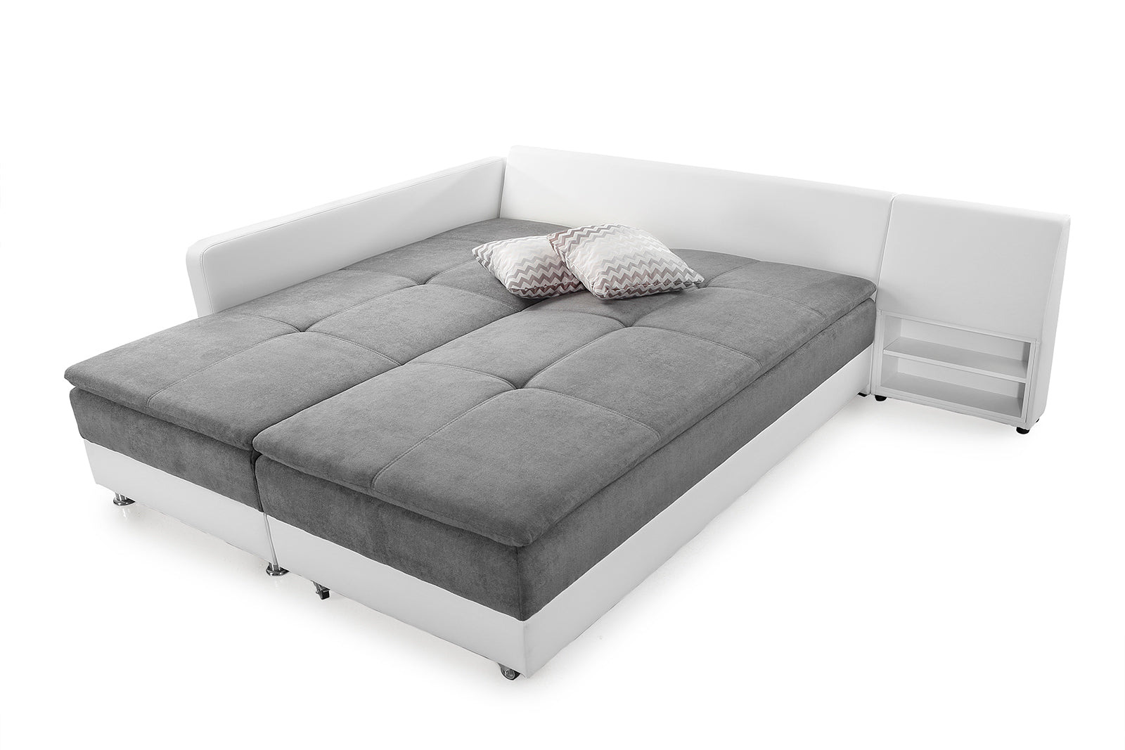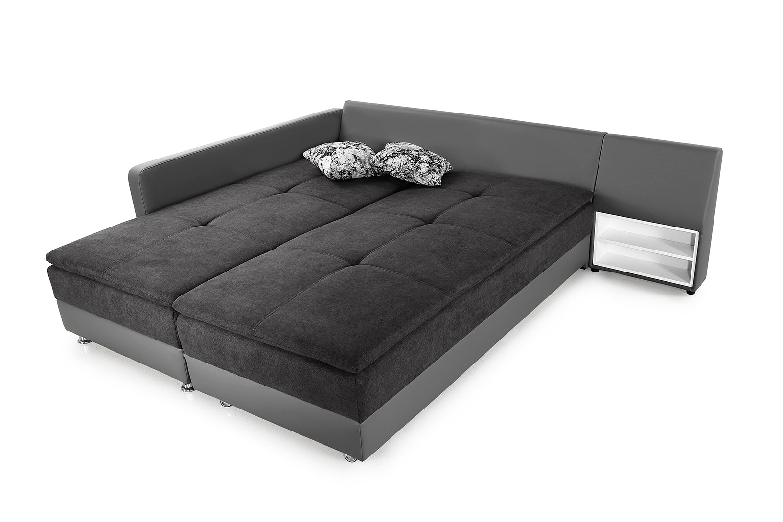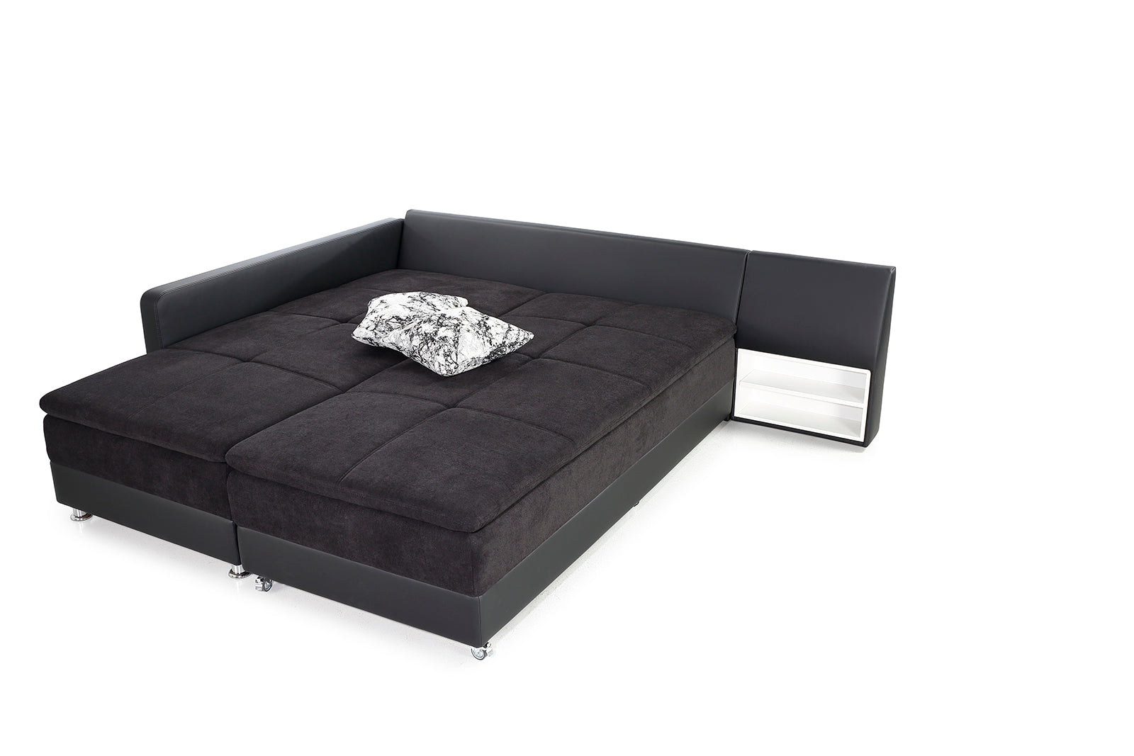 Warrington kanapénk esetében a teljes kényelmet ötvöztük a praktikummal. Egészen gigászi, 180 x 200 centiméteres ágy alakítható ki belőle, melyet akár mindennapi alvásra is lehet használni. Háttámlájába rejtett éjjeli polcocskájánál, csak arra kell figyelned, nehogy benne felejtsd a telefonod, mikor visszafordítod kanapé formába ágyad.