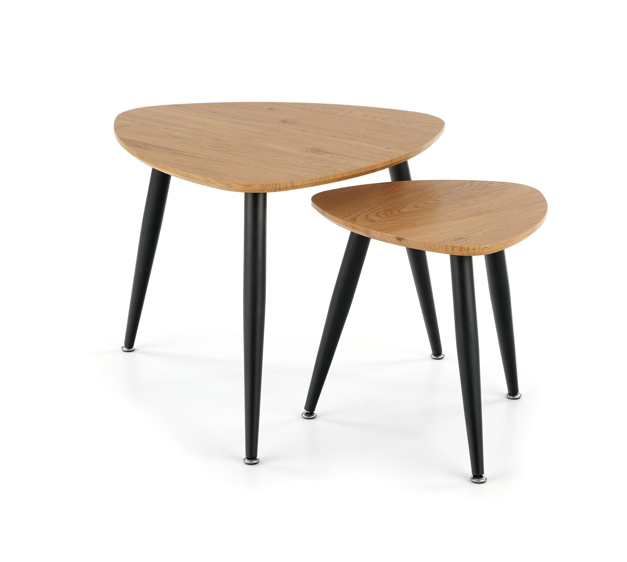 Helyezd el otthonodban a természet erejét modern és letisztult formában. A Neste dohányzóasztal szett kettő darabból áll, különlegességét meleg, aranytölgy asztallapja adja, melyet finoman egészít ki lekerekített háromszög formája.